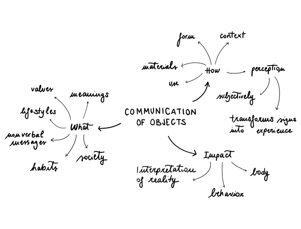 The theme I chose for this research concerns the communication of objects, that is, the way products convey meanings, values, and messages through their form, function, materials, and context of use. This communication is not only design-driven but also personal and subjective: each individual interprets objects based on their own experience.