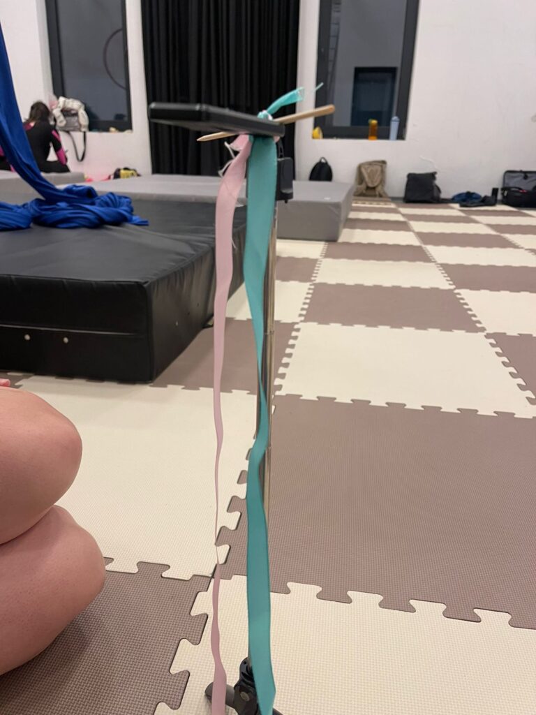 This prototype was not really useful for the intermediate aerialist, since they all have knowledge of the basic knots used in most figures (e.g. footlock, hip key, russian climb, etc.) There was no use case for this object in their case. I tried to use it to teach catcher’s pose to P3, but it didn’t really help. This is because catcher’s pose is not a mentally complex knot, rather a physically complex one. She understood what she had to do, but she mentioned she didn’t have the proper bodily proportions (her arm is not long) to do it properly, nor was she strong enough to hold herself in an inverted position for a long time to try out other solutions.