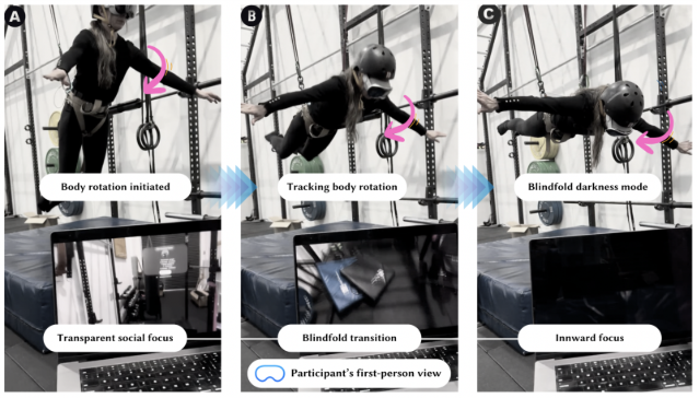 [1] states that “a central puzzle that people face, from a design perspective, is how to make communication possible that was once difficult, impossible or unimagined.” This problem is exacerbated when the communication topic is one’s own body awareness and proprioception – and it’s an even bigger problem when you add the extra element of being suspended in the air.