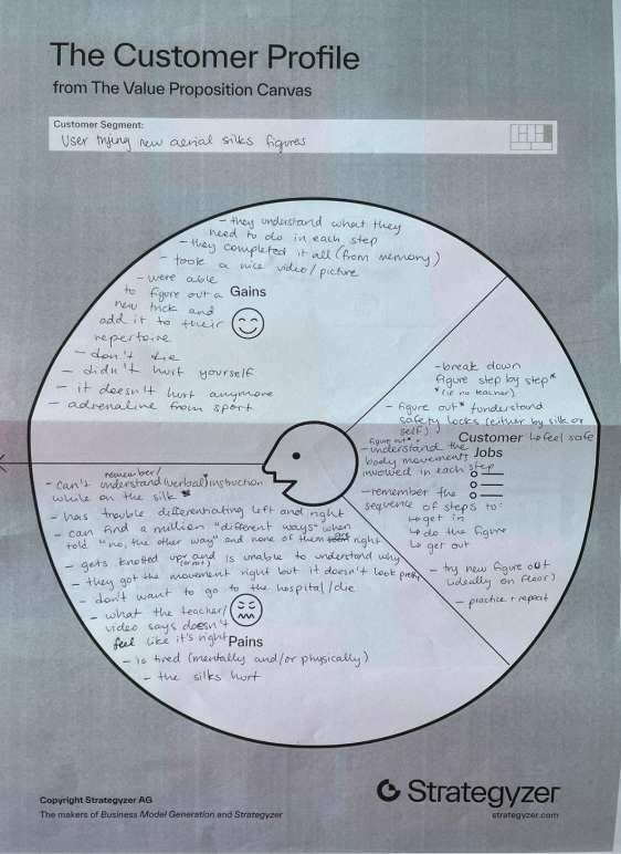 Who is the target audience? Who is the customer? The target audience is the aerial silks student who wants to learn new figures. However, the customer is both the student and also the aerial silks teacher that wants to be able to explain in more classes without having to expense copious amounts of physical energy.