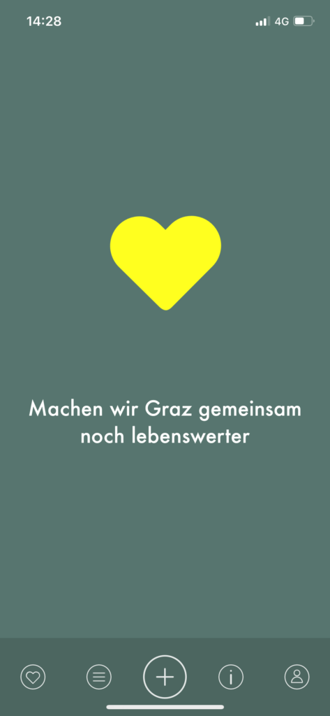 have been living in Graz for almost 3 months, but I had never heard of it and I wanted to know if I am the only one. I asked my colleagues from the Communication, Media, Sound and Interaction Design course how familiar they were with it. Out of the almost 30 people who answered, only 4 people from Graz/Styria knew it, the rest had never heard of it, including 2 people from Graz and surroundings. None of the people who are new in Graz knew the app. I reckon that it is a great way to improve public areas and think that it is a pity that it is not very common. I have never seen an ad about it, but I found it quite well hidden on the Stadt Graz website, under “apps of the city of Graz”.