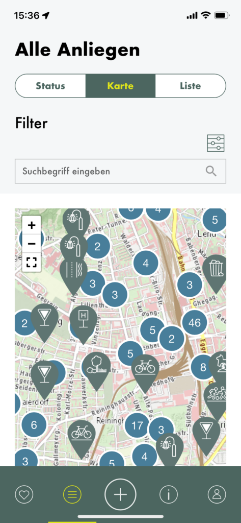 You can then check the progress of your query on the “my concerns” page. I also took a look at other queries and found it convenient that you can choose if you want to see their status, their position on the map or a list.